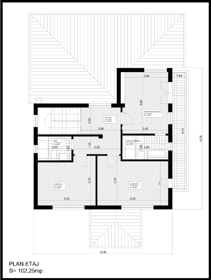 -suprafata etaj = 102,25mp (suprafata utila mansarda = 92,25mp
